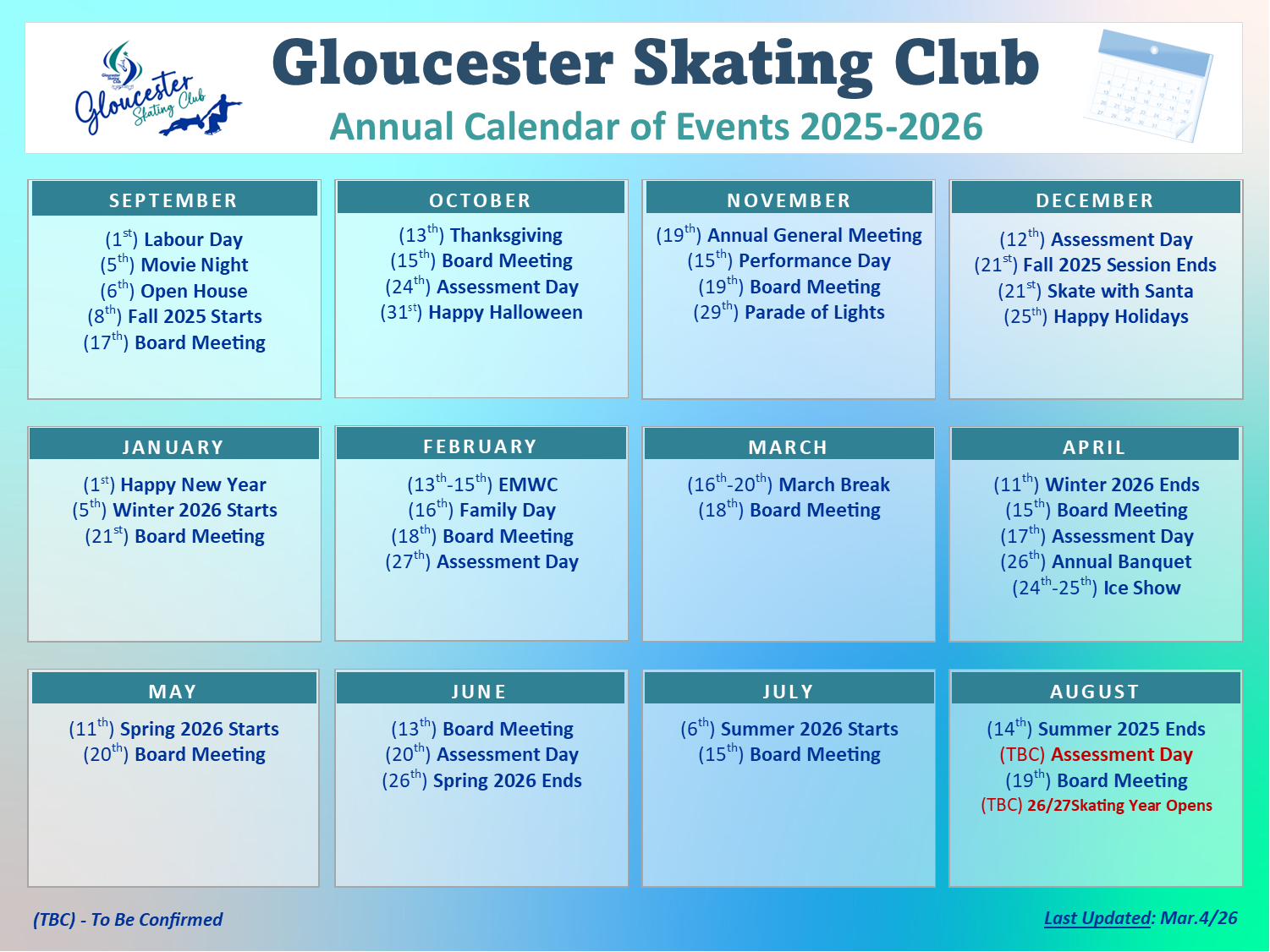 Events and dates may change as required.